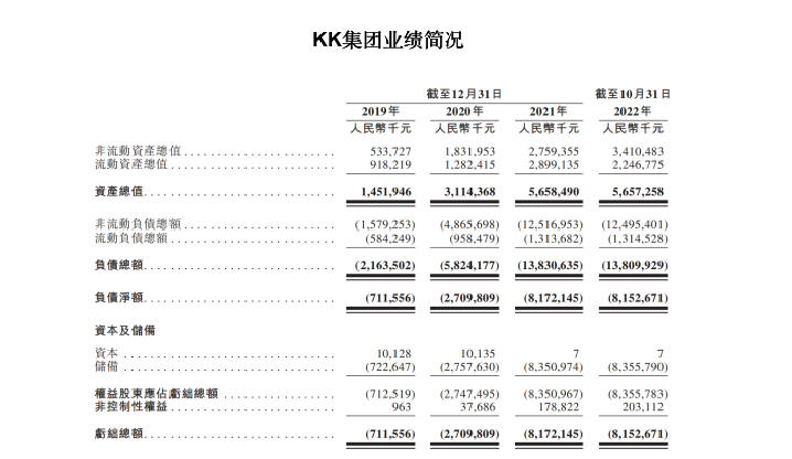 其中,以旗下?lián)碛蠯KV、THE COLORIST、X11和KK館等多個(gè)連鎖零售品牌的KK集團(tuán)為例,根據(jù)其招股書顯示,2019年-2022年10月末,公司的營收雖從4.64億元漲至30.67億元,但2019年-2021年則合計(jì)虧損超82億元。