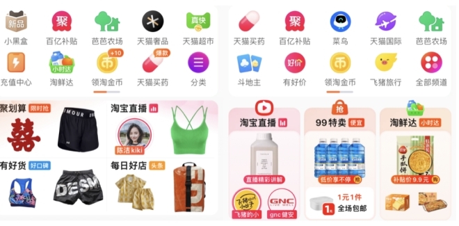 左為淘寶App改版前,右為改版后