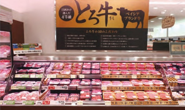 在肉類方面,公司只采購達(dá)到四級(jí)肉質(zhì)的牛肉(譯者注:日本牛肉等級(jí)劃分為A/B/C三等,1-5五級(jí)。A表示整牛出肉率最高,5表示肉類品質(zhì)最好。四級(jí)以上幾乎都是和牛),且由專業(yè)鑒賞家精心挑選、整只購買,并推出了一個(gè)新的品牌牛肉——托羅牛肉。由于采購整頭牛,因此可以獲得各種高質(zhì)量的新鮮肉,從瘦肉到大理石肉都有。由于托羅牛肉的采購注重質(zhì)量,公司只從每個(gè)地區(qū)的可靠農(nóng)民手里采購,不敢捆綁固定的生產(chǎn)地區(qū)。此外,公司舉辦研討會(huì),為商店的加工人員提供技術(shù)指導(dǎo),以確保銷售謹(jǐn)慎進(jìn)行。
