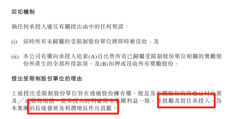 據(jù)悉,這些股份有半年至兩年不等的歸屬期。美團(tuán)表示,授出受限制股份單位旨在透過(guò)股份擁有權(quán)、股息及有關(guān)股份的其他已付分派及/或股份增值,使承授人的利益與集團(tuán)利益一致,并鼓勵(lì)及留住承授人,為集團(tuán)的長(zhǎng)遠(yuǎn)發(fā)展及利潤(rùn)增長(zhǎng)作出貢獻(xiàn)。