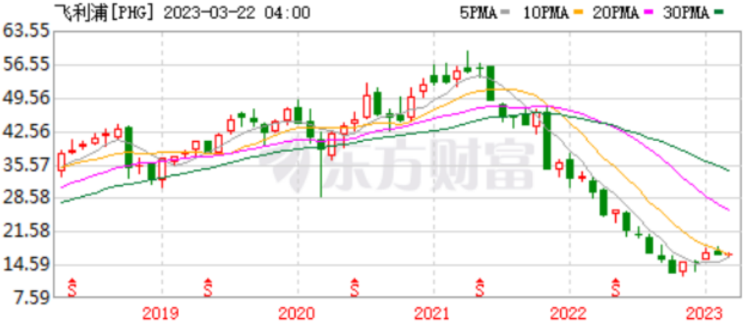 消息一出,公司的股價(jià)開始迎來斷崖式下跌。從2021年5月近60元的高點(diǎn),一路跌到2022年底12元的低點(diǎn),股價(jià)跌去了80%。依靠收購(gòu)迅速崛起的飛利浦醫(yī)療業(yè)務(wù),需要飛利浦以嚴(yán)苛的管控體系,做整合和協(xié)調(diào),否則這樣的歷史悲劇可能會(huì)再次上演。