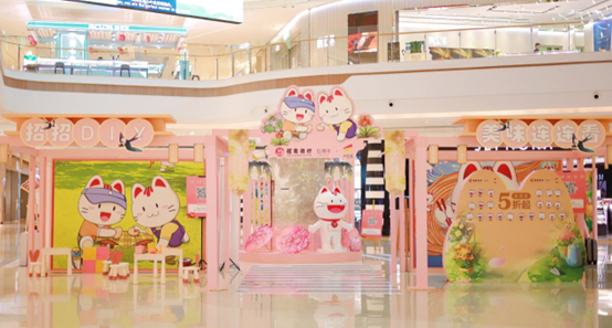 3月聯(lián)手招商銀行,共同發(fā)起“春日何灼灼喵喵節(jié)”,通過在中庭落地互動(dòng)美陳展,結(jié)合招商銀行餐飲合作,來為到訪者提供多元情緒價(jià)值。