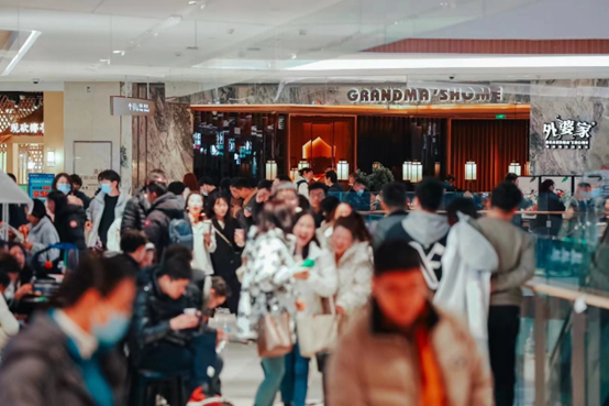 疫情結(jié)束后,煙火氣率先恢復(fù),餐飲用餐需求激增,項(xiàng)目著力提高餐飲豐富度及吸引力,為客流發(fā)動(dòng)機(jī)重啟輸出強(qiáng)勁動(dòng)力,先后引進(jìn)櫻煦和牛壽喜燒、沙膽彪探爐牛雜煲、安三胖韓國烤肉料理、鵲拾湘、留湘園等杭州或區(qū)域首店,其中鵲拾湘開業(yè)即成為杭城人氣打卡王,登頂大眾點(diǎn)評(píng)熱搜,此外通過老店新開,煥新升級(jí)奈雪的茶最新主題形象店,結(jié)合當(dāng)下潮流IP,吸引年輕人前來打卡。