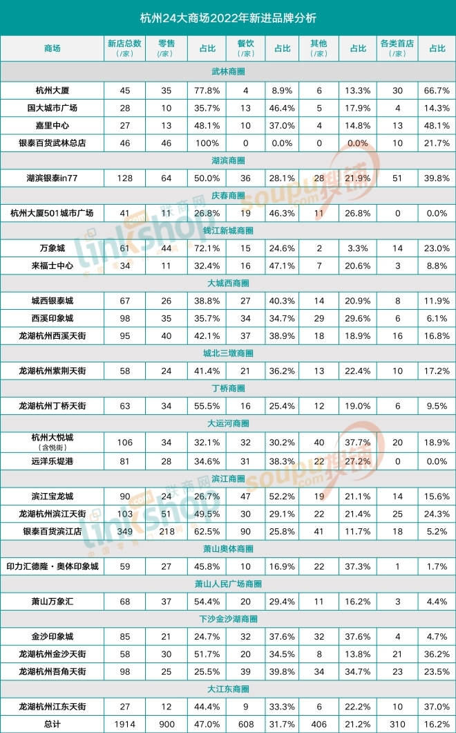 附:2022年度杭州24家商場(chǎng)新進(jìn)品牌&首店名單