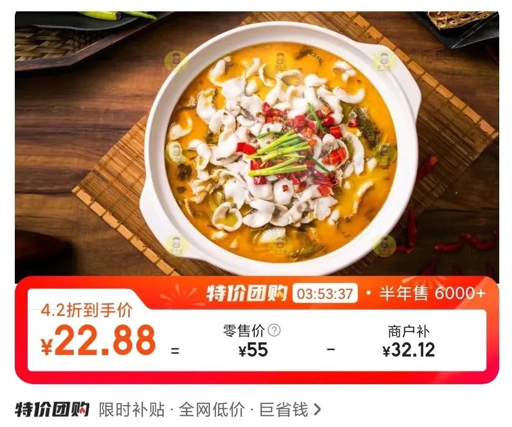 比如肯德基的十翅團(tuán)購(gòu)套餐,原價(jià)39.9元,特價(jià)只優(yōu)惠了1.02元;比如某餐飲店的酸菜魚套餐,原價(jià)55元,特價(jià)優(yōu)惠了4.2折。
