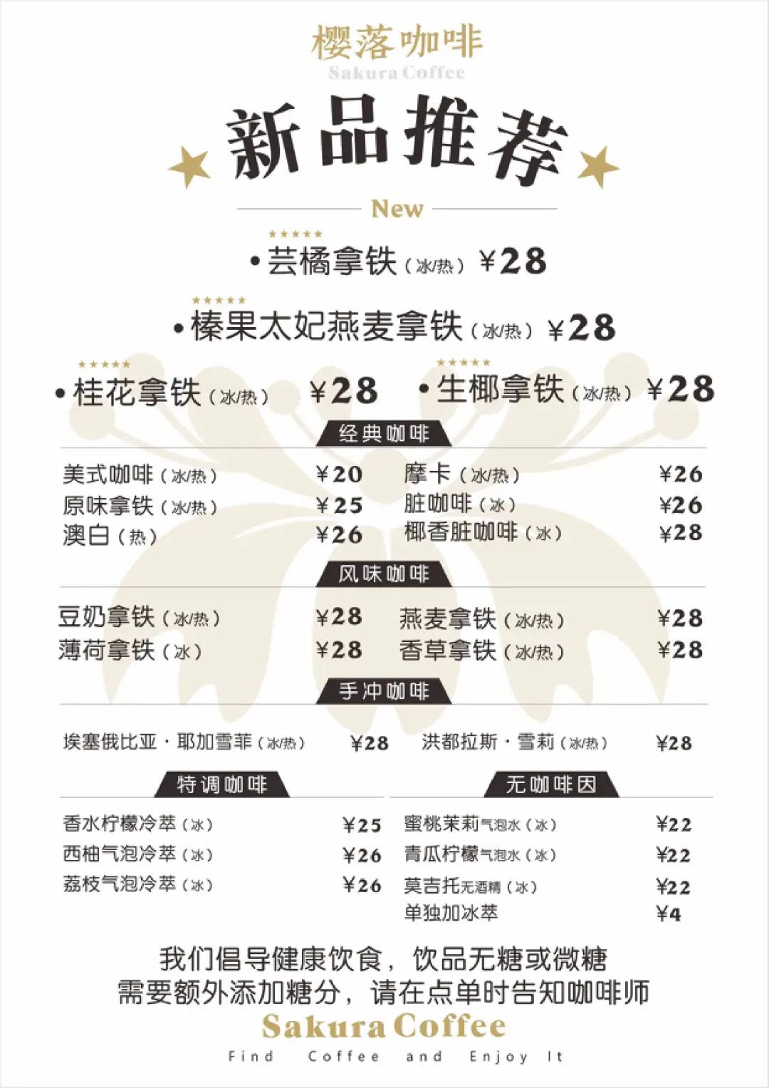 受訪者供圖:成都櫻落咖啡多樣化菜單