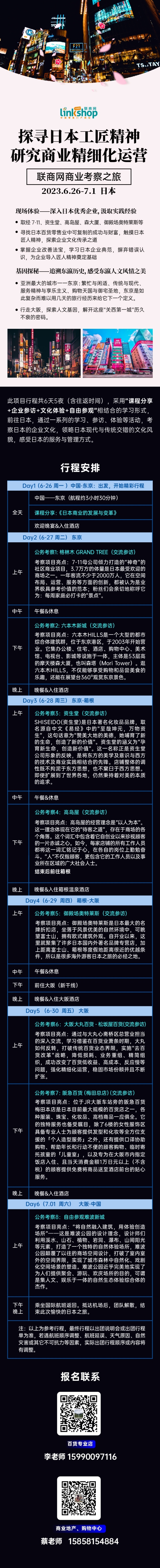 基于此,6月26日-7月1日,聯(lián)商網(wǎng)將啟動(dòng)日本商業(yè)考察,我們將帶領(lǐng)學(xué)員深入考察學(xué)習(xí)日本品牌、百貨及購(gòu)物中心的精細(xì)化管理模式,進(jìn)而感受日本的企業(yè)文化;體驗(yàn)日本傳統(tǒng)文化與現(xiàn)代商業(yè)文明,探索其經(jīng)濟(jì)發(fā)達(dá)的背后真因。