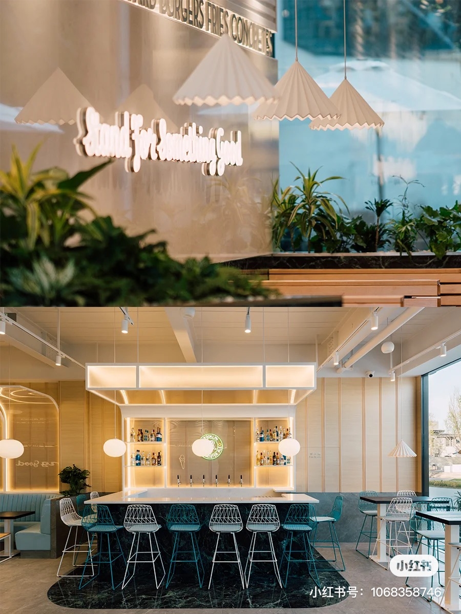 據(jù)官方介紹,阿那亞店的門店設(shè)計融入海灘的顏色和大理石紋理,店內(nèi)吊燈起伏排列,高腳凳整齊排列,融入了附近沙灘的靈感元素,用波浪形的吊燈與瓷磚,將慵懶和熱烈融為一體。