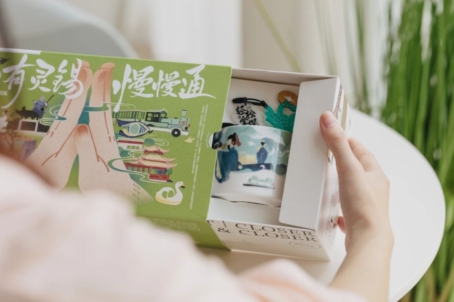 據(jù)了解,本次入駐無錫,茶顏悅色專門制作了一款無錫城市限定禮盒——“心有靈錫慢慢通”。禮盒整體外觀設(shè)計呈快遞箱款式。禮盒內(nèi)包含一些茶葉和無錫主題杯,以及一串“單手抓住星星”的掛墜。