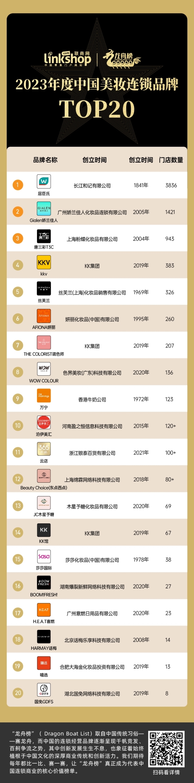 2023年度中國美妝連鎖品牌TOP20
