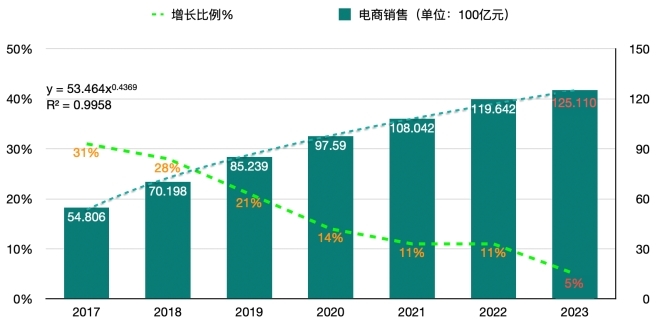 來(lái)源:作者根據(jù)歷年統(tǒng)計(jì)局通報(bào)數(shù)據(jù)對(duì)2023電商銷(xiāo)售額的非線性推測(cè)