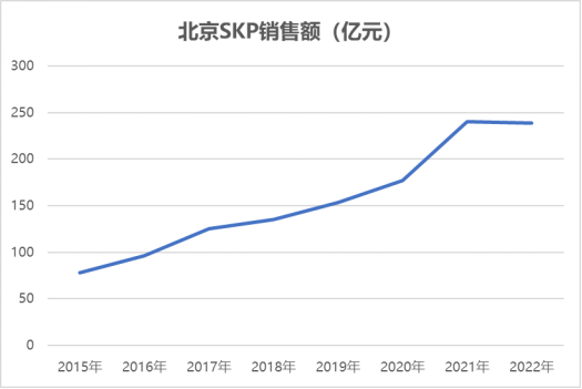 2020年,北京SKP以177億元的銷售額首次超過英國老牌百貨商場哈羅德,問鼎全球“店王”;2022年,銷售數(shù)據(jù)進一步達到239億元。