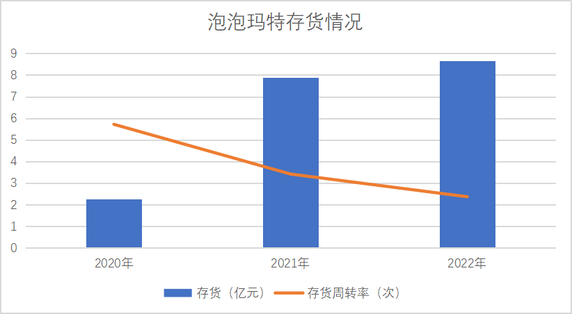 直到2022年,泡泡瑪特才停止了對外擴(kuò)張的腳步。而在此之前,泡泡瑪特開店的節(jié)奏表示對未來市場看好,加大了生產(chǎn)規(guī)模,但由于銷量并未與生產(chǎn)同比例增加,最終導(dǎo)致其存貨周轉(zhuǎn)率下降。