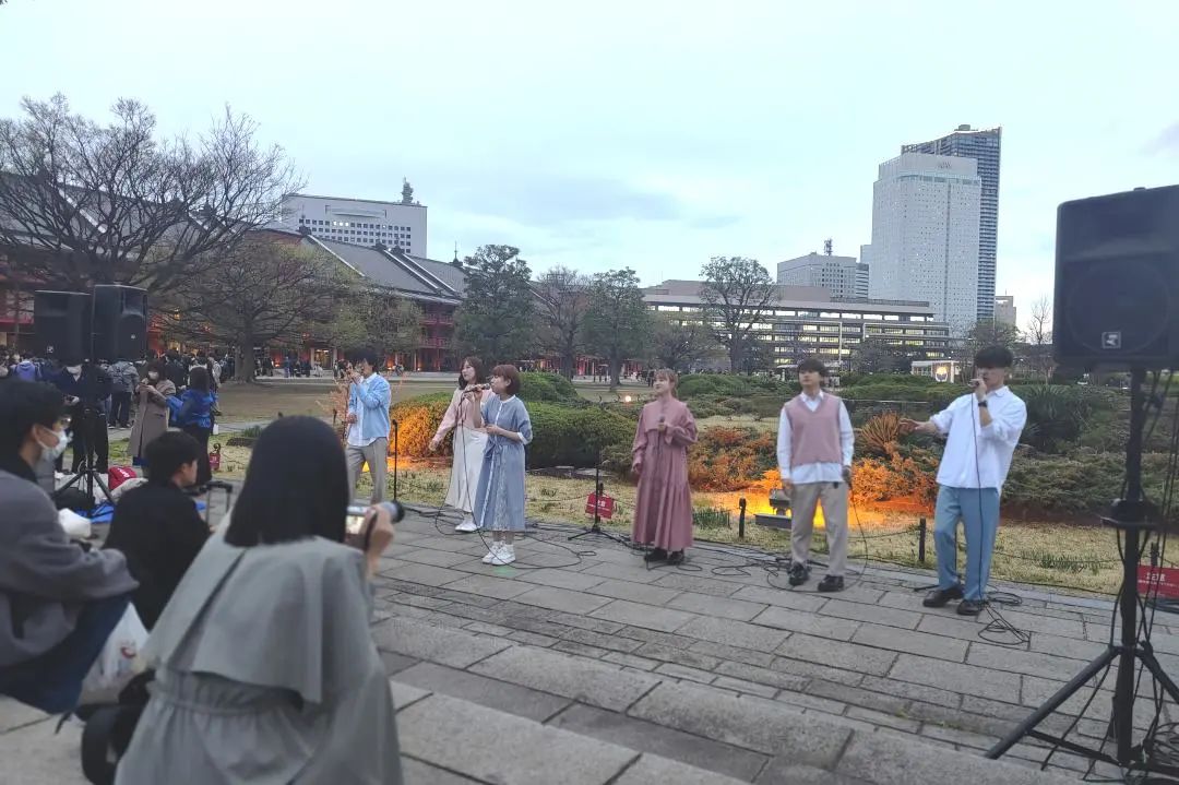 我們參觀的那天,廣場(chǎng)上有十幾組年輕人的駐場(chǎng)點(diǎn),全都裝備齊全、連服裝都有精心設(shè)計(jì)。整個(gè)廣場(chǎng)沉浸在此起彼伏的歌聲之中。