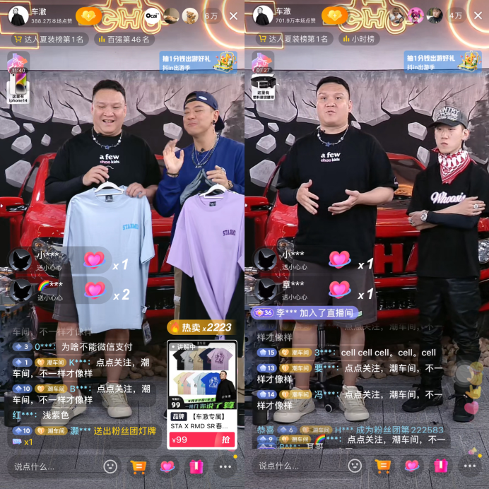 聚焦到抖音電商潮流賽道,剁主關(guān)注到,無(wú)論是車澈近期的潮流直播爆火,還是前段時(shí)間明星王鶴棣的潮牌D.Desirable 在抖音商城大賣,借助內(nèi)容化優(yōu)勢(shì),抖音電商已然成為潮流引爆的最佳助燃劑。