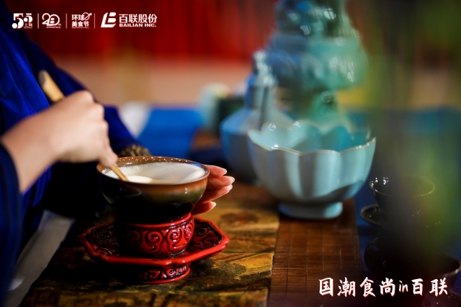 從中式花藝到中國(guó)茶道,從宋代點(diǎn)茶這門盛世技藝到鈞瓷金繕古陶瓷修復(fù),都能在這里一一體驗(yàn)。在宋朝,斗茶是一種以茶為主體,輔以茶餅、茶盞、茶勺等茶具,通過(guò)注水、擊拂、看沫成花等程序斗茶的習(xí)俗。斗茶活動(dòng)中,在一盞茶湯中,不僅要評(píng)出高下優(yōu)劣,還要通過(guò)激烈的比賽爭(zhēng)奪最后的勝利。在“國(guó)潮食尚 in百聯(lián)”系列活動(dòng)中,大宋官茶非遺傳承人宋代點(diǎn)茶高級(jí)講師南喬親臨第一百貨商業(yè)中心活動(dòng)現(xiàn)場(chǎng),為當(dāng)下推崇國(guó)潮國(guó)風(fēng)的新世代消費(fèi)者帶來(lái)宋代點(diǎn)茶,講述傳統(tǒng)茶道技藝,體驗(yàn)別樣文化。