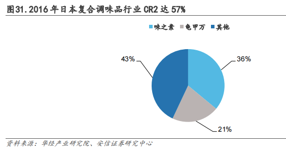 而日本的復(fù)合調(diào)味品行業(yè)前兩名公司(CR2),就達(dá)到了57%。