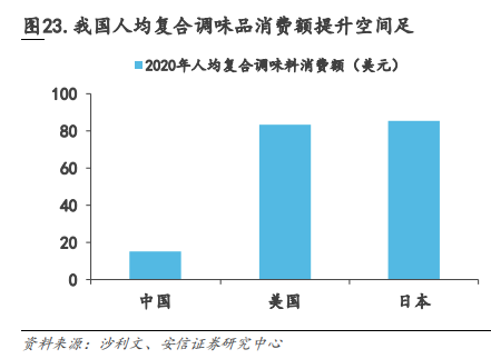 2020年,國(guó)內(nèi)調(diào)味品是美國(guó)的52%、日本的45%,人均開(kāi)支15美元/年。