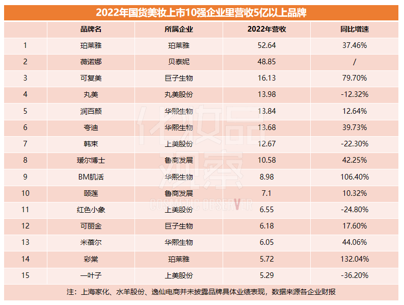 此外,目前并無IPO動作的美妝企業(yè)里,如花西子、百雀羚、自然堂、植物醫(yī)生等,營收在國貨美妝里亦屬于頭部。