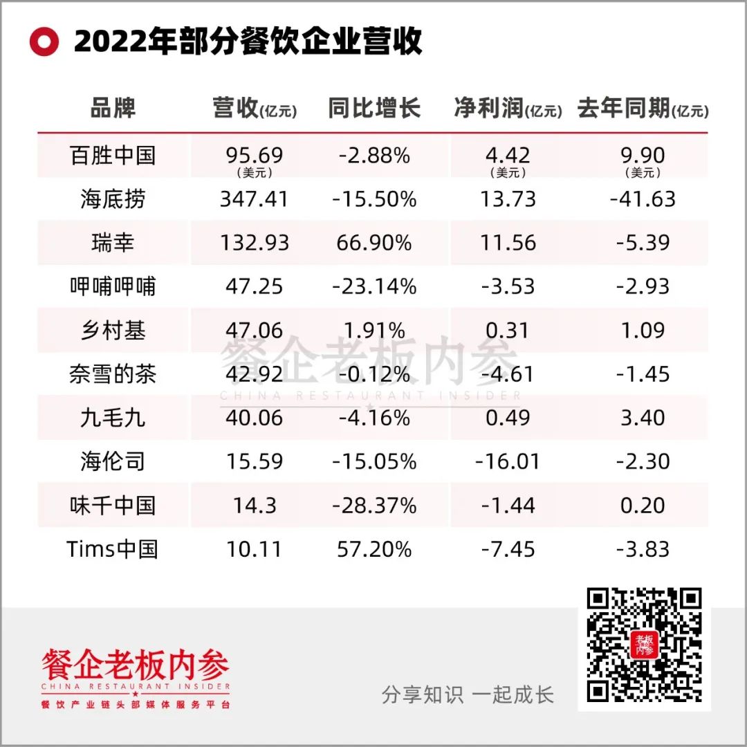 然而,三年疫情讓餐飲大盤出現(xiàn)了令人氣餒的倒退,一批充滿活力的品牌也歸于沉寂。尤其是2022年,線下消費(fèi)場(chǎng)景受阻,行業(yè)經(jīng)歷較前一年更為嚴(yán)苛的考驗(yàn),收入端普遍承壓,盈利波動(dòng)性大。