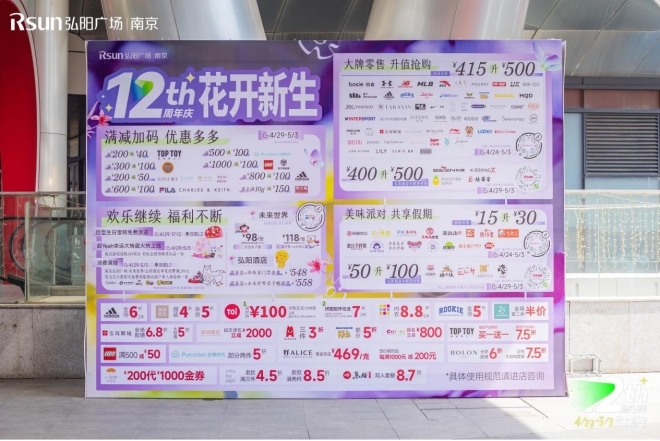 除了精致的場景打造、豐富的內容互動之外,也為全城消費者推出了假期購物狂潮!此次南京弘陽廣場12周年慶還放出大額獨家福利:大牌零售升值搶購,近60家精品零售415元升500元;美味派對共享假期,多家熱門小食15元升30元;更有吃飯皇帝大、蛙小俠、九田家等網紅餐飲50元升100元;同時,聯(lián)動TOP TOY、星聚會、全棉時代、LEGO等眾多大牌店鋪,開展限量滿減活動,掀起五一消費新高潮。