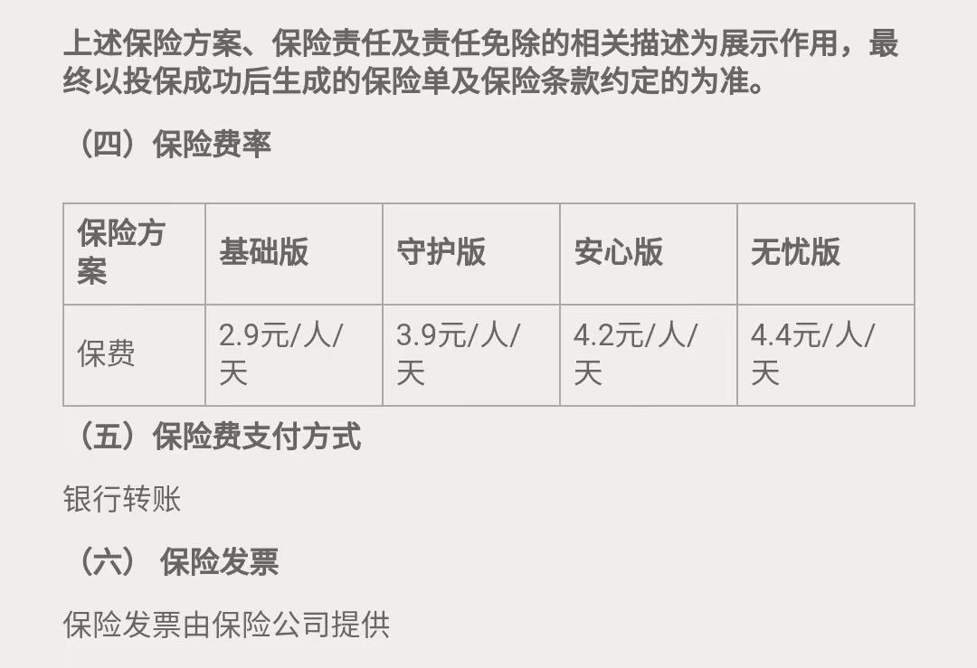 頁面顯示,騎手的保費最高是4.4元/人/天,但小重每日扣除的費用是5元。這個保費是由騎手本人承擔,若不購買則沒有資格接單,并且即便在不跑單的月休4天里也依然要繳納。