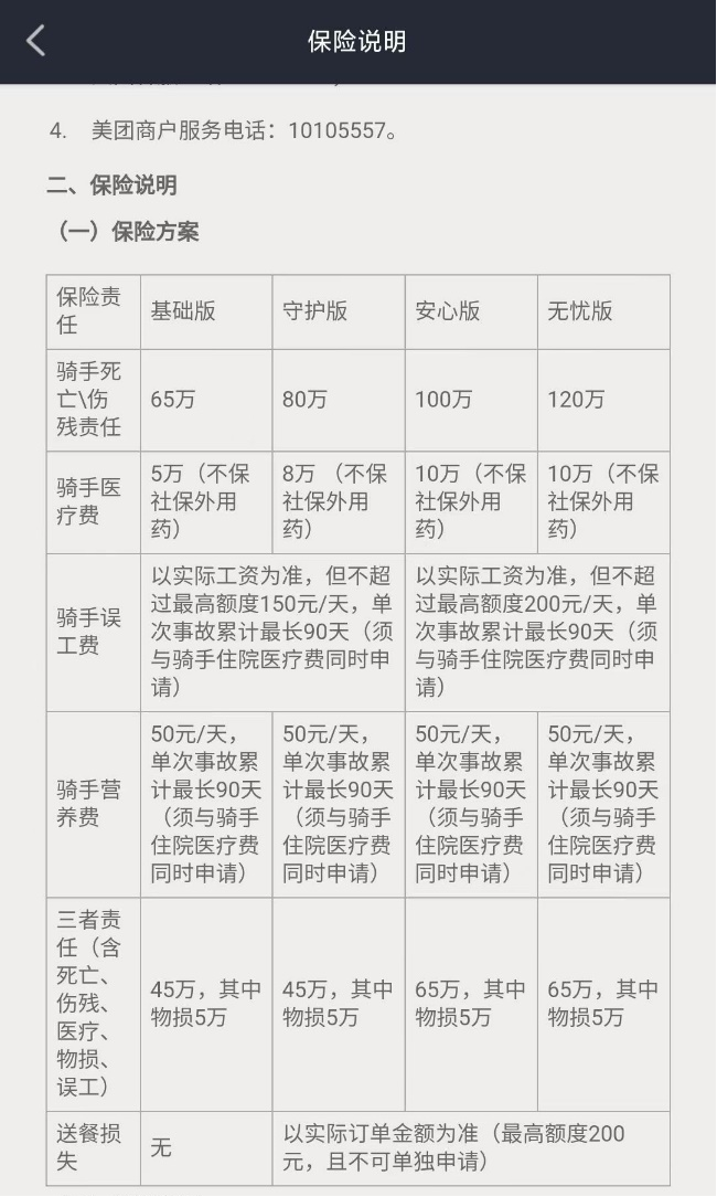美團將運力需求外包,保險繳納的責任同時被轉移至第三方公司,但平臺并不硬性規(guī)定配送商對騎手的社保管理,僅要求合作商為騎手購買責任險。