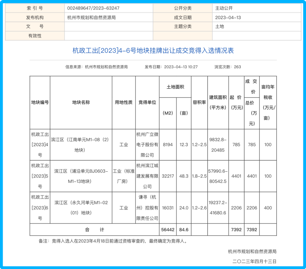 4月13日,杭州市規(guī)劃和自然資源局發(fā)布的一則地塊掛牌出讓成交競得入選信息,引發(fā)了廣泛關(guān)注。