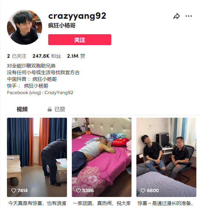 這次宣布布局海外的小楊哥,早在2021年就已經(jīng)開通了Tik Tok的賬號。