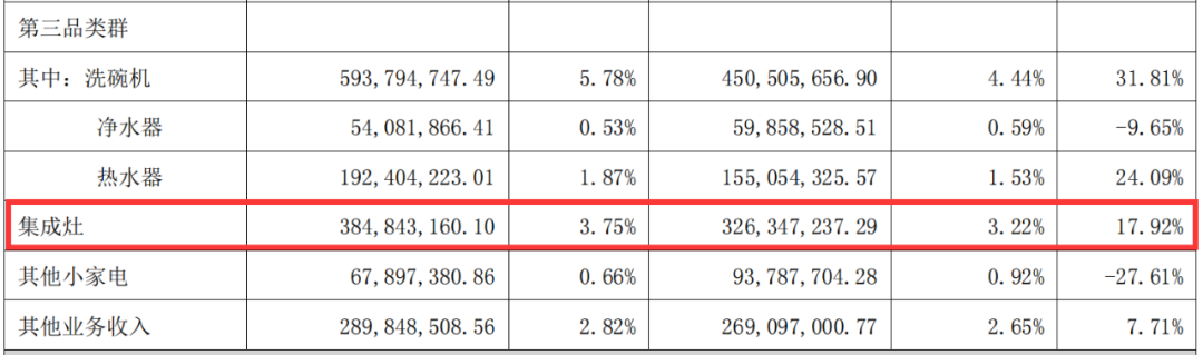 2018年4月,老板電器收購(gòu)金帝智能廚電并對(duì)其增資,正式進(jìn)軍集成灶領(lǐng)域。根據(jù)2022年財(cái)報(bào),集成灶收入為3.85億元,同比增長(zhǎng)17.92%,相較于其他品類表現(xiàn)不俗。