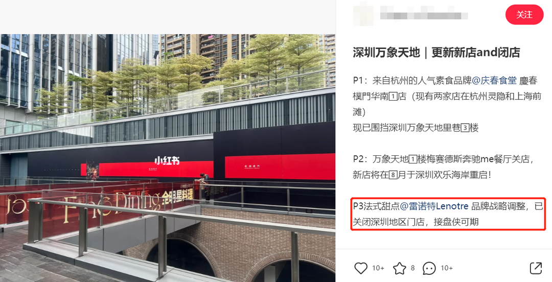 近日,小紅書上的一條消息引起筆者關(guān)注,網(wǎng)友在盤點(diǎn)深圳萬象天地近期新店與閉店情況時(shí)表示,商場內(nèi)的雷諾特已閉店,有充值的可現(xiàn)場處理,辦理時(shí)間在5月4日到10日。