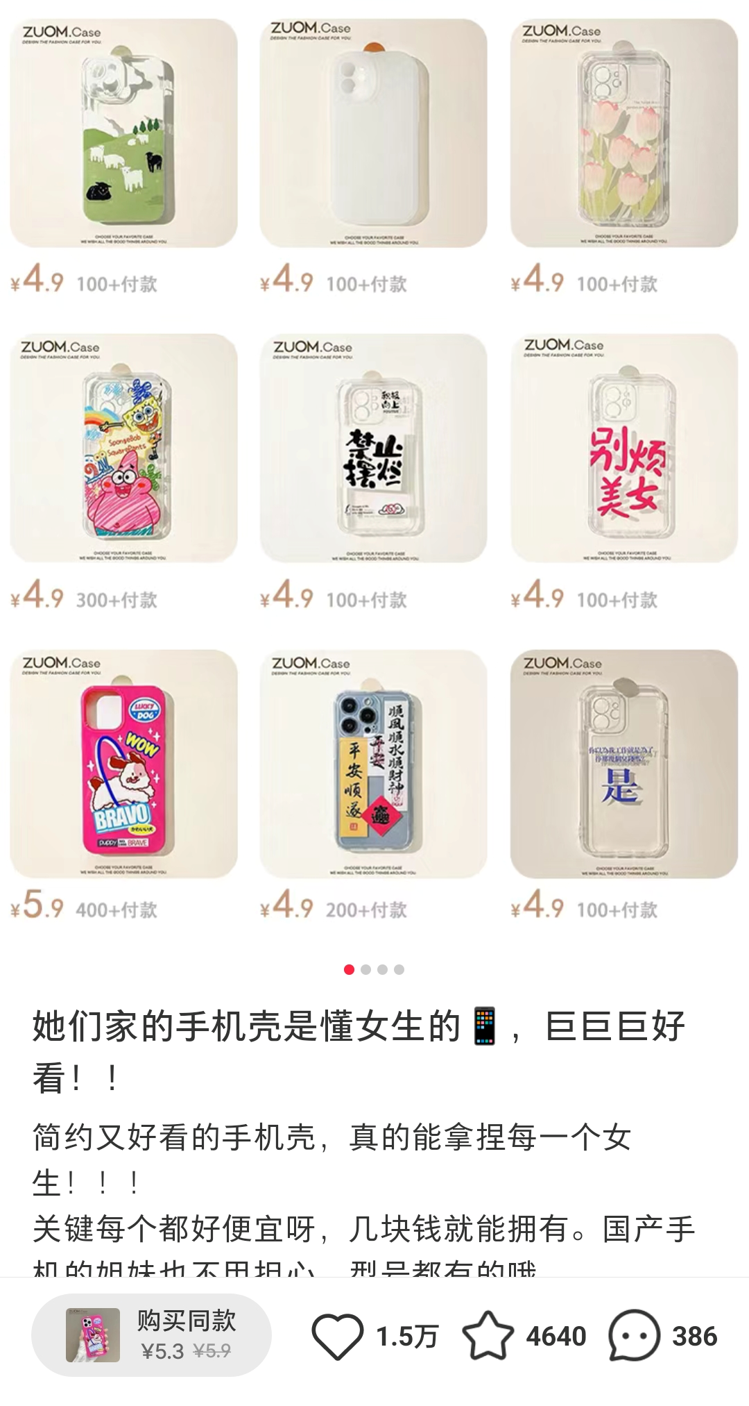 而在小紅書(shū)開(kāi)店,購(gòu)物頻道的流量其實(shí)只占了一部分,更多的來(lái)自筆記的推薦。某位在小紅書(shū)售賣(mài)手機(jī)殼的商家表示,憑借發(fā)布圖文和視頻筆記觸達(dá)用戶,她的店鋪月流水已超過(guò)10萬(wàn),幾乎沒(méi)有營(yíng)銷(xiāo)成本。
