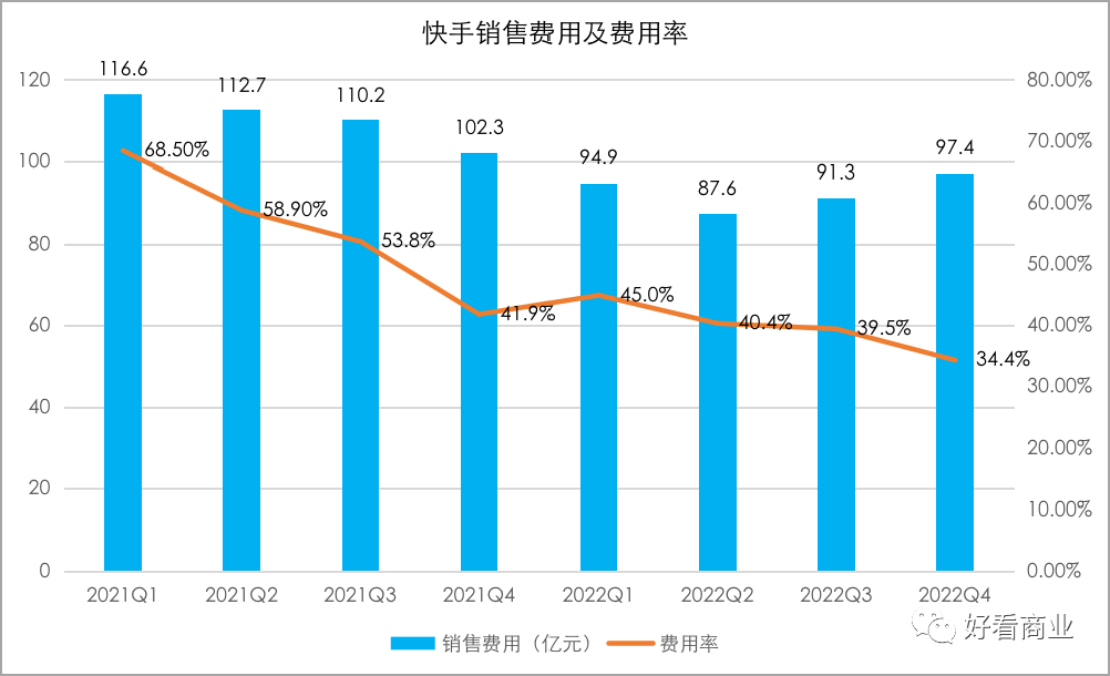 不過,要打價格戰(zhàn),除了靠商家出錢,平臺也要“出血”?焓衷2022年大手筆降本增效,銷售費(fèi)用率控制在40%以內(nèi)。