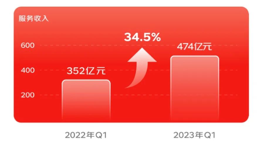 目前,該種外溢能力正在京東的財報中擴散。2023年Q1,京東服務收入同比增長34.5%至474億元。