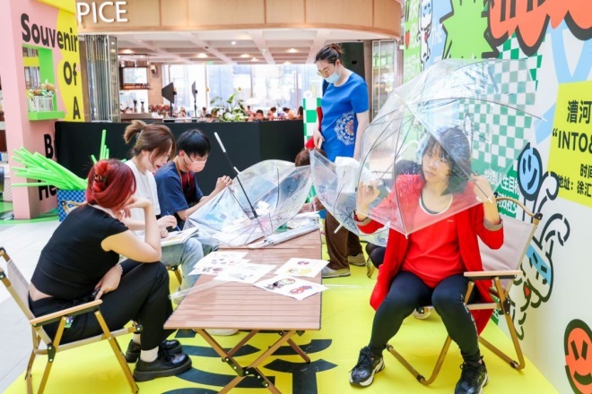 “INTO&INTO”新青年文化節(jié)活動(dòng)展廳坐落于商場(chǎng)1樓中庭,“SHOW TIME”舞臺(tái)、“A Wish”定制青年文化墻、“人生暫!毙№巍ⅰ笆偌o(jì)念物”投稿展示角、“凌晨4點(diǎn)紀(jì)實(shí)-麻辣往事”拍立得照片墻、“保衛(wèi)睡眠”白噪音睡眠體驗(yàn)等多個(gè)文化互動(dòng)場(chǎng)景令人眼前一亮。消費(fèi)者不僅可以在此互動(dòng)打卡,共創(chuàng)青年文化內(nèi)容,還能參與舞臺(tái)即興戲劇表演、威爾仕健身明星舞蹈公開課,以及體驗(yàn)手繪水晶傘、非洲鼓DIY等多種主題創(chuàng)意手作活動(dòng),感受妙趣橫生的新潮社交樂趣。