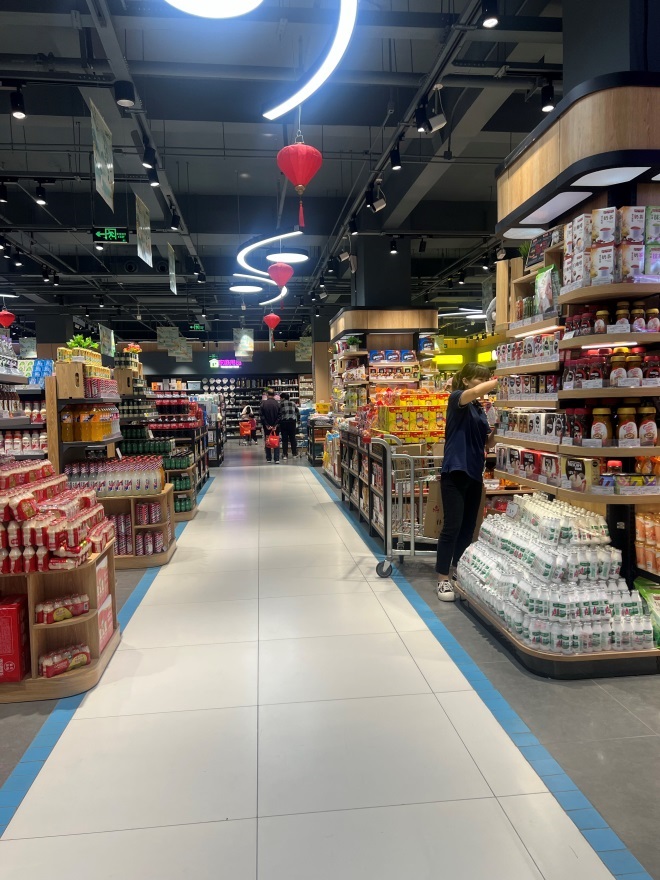 在賣場(chǎng)布局上,整個(gè)超市主通道采用O型動(dòng)線設(shè)計(jì),所有品類都在主通道兩邊,顧客可以輕易的在店內(nèi)找到自己想要的商品,是商品擺放沒有死角,能充分的展示出來。走在主通道上,一個(gè)區(qū)域 一處場(chǎng)景,是顧客真真正正體驗(yàn)到逛超市的感覺,甚是愜意。