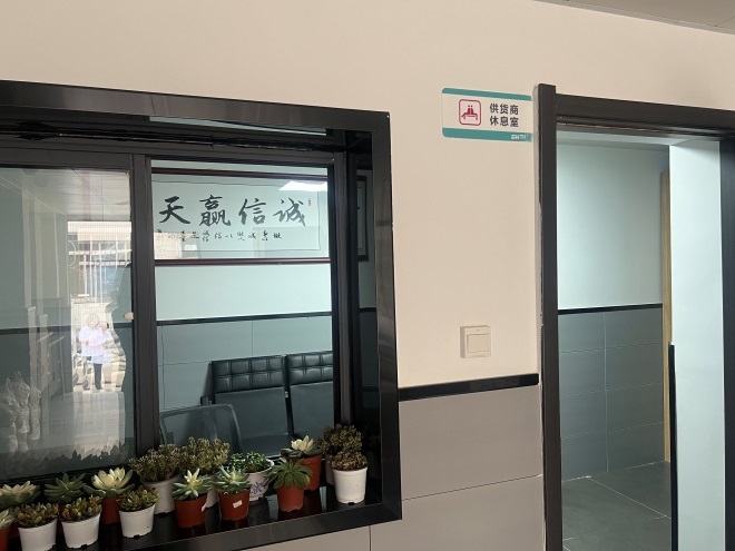 在收貨區(qū)設(shè)置供應(yīng)商休息區(qū),后場(chǎng)提供員工休息室,均提供有咖啡、飲料、奶茶、純凈水等;員工休息區(qū)配置有微波爐、冰箱以及多功能免費(fèi)充電器供員工使用;兩部觀光電梯兩部踏步梯滿足顧客需求;進(jìn)店門口有緩坡通道供特殊顧客及有需要的顧客使用。
