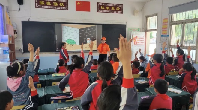捐贈儀式結(jié)束后,貴州合力超市集團志愿者、福建省擔當者行動教育基金會老師深入班級進行閱讀指導,互動交流。貴州合力超市公益負責人謝紅玲還為孩子們上了一堂生動的閱讀課——《跑跑鎮(zhèn)》的故事。閱讀互動過程中,同學們發(fā)出陣陣爆笑聲,現(xiàn)場氣氛熱烈而歡快,即使故事講完了,孩子們還是意猶未盡。