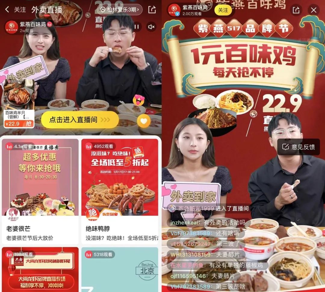 從這里可以看出,直播,以及在直播間中出售的商品券,更像是一種引流工具。這種外賣直播的操作方式,最大限度將用戶聚合,提升其消費意愿,在更長的時間里也會帶動更多隨機消費。并且,相比起此前的發(fā)放紅包券等行為,商品券降低了消費者的決策難度,縮短了其消費鏈路。