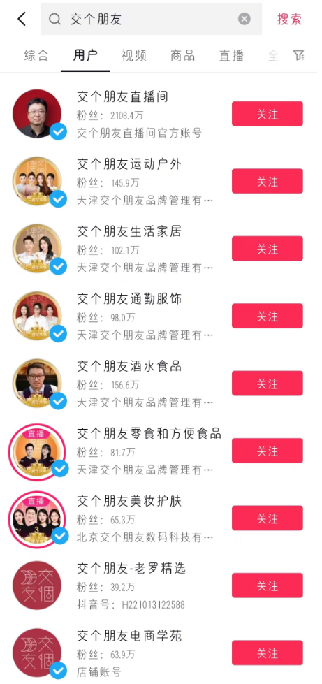 抖音中“交個(gè)朋友”相關(guān)直播間