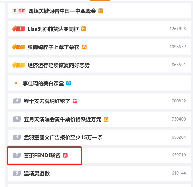 昨天上午,#喜茶和FENDI聯名#的話題沖上微博熱搜第七位。