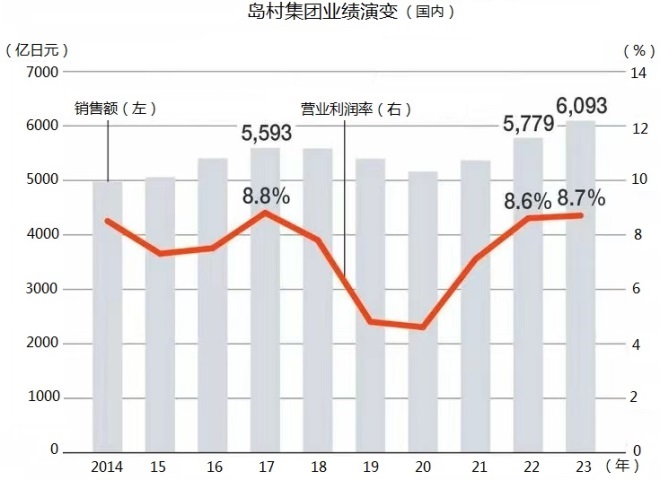值得關(guān)注的點(diǎn)在于,6年前的2017年,島村在SNS上引發(fā)一波熱議,主要是過(guò)多開(kāi)店、商品政策失誤,低迷了一段時(shí)間,但是企業(yè)敢于創(chuàng)新求變,控制住下滑趨勢(shì),尤其是近三年疫情冰河期,很多同業(yè)企業(yè)在渡劫,島村卻勇立潮頭,連續(xù)兩年實(shí)現(xiàn)利潤(rùn)增長(zhǎng),驗(yàn)證一個(gè)道理:在困境中不躺平、善于奮斗是可以復(fù)活的。