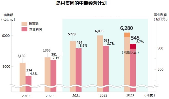 島村集團(tuán)有兩步戰(zhàn)略計(jì)劃,一是到2024年的中期計(jì)劃,二是到2030年的長(zhǎng)期計(jì)劃。
