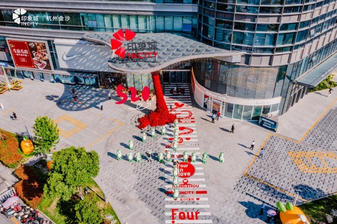 龍湖杭州金沙天街聯(lián)動(dòng)4大品牌開(kāi)啟杭城告白計(jì)劃,DR求婚季·勇敢說(shuō)出愛(ài)打造巨型愛(ài)心互動(dòng)裝置,NO ONE ELSE BUT CHUU(YOU)愛(ài)心階梯、IDO愛(ài)情專(zhuān)車(chē)、Pit玫瑰莊園打造巨型玫瑰花束,解鎖滿屏浪漫。