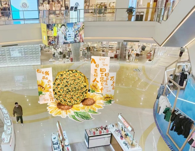 5月18日—21日,杭州大廈501城市廣場(chǎng)推出“健康生活、禮遇520”主題活動(dòng),在景曇路沿街?jǐn)[放巨型玫瑰花,營(yíng)造浪漫氣氛,為顧客營(yíng)造出一個(gè)溫馨浪漫的購(gòu)物環(huán)境。