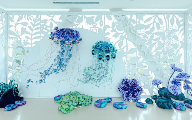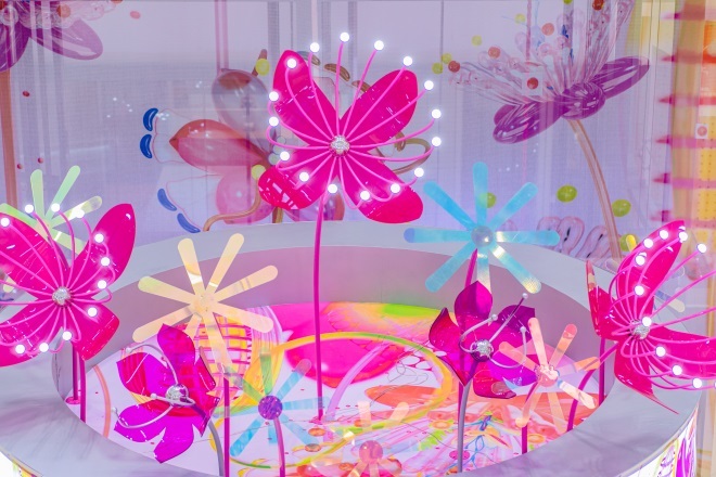 5月19日—6月18日,城西銀泰城聯(lián)手藝術(shù)家高筠、樂(lè)處空間,將巨型花園搬入城市中,共同舉辦了綺夢(mèng)花園藝術(shù)展,用真絲、折紙、紗網(wǎng)、燈光打造秘密花園秘境,共分為兩個(gè)部分,第一部分是被花花圍繞的夢(mèng)幻許愿池,第二部分是從商場(chǎng)空中傾瀉而下的20米繁華瀑布。