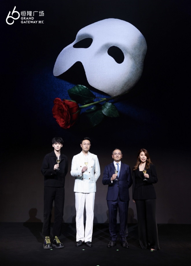 活動(dòng)儀式現(xiàn)場(chǎng),恒隆地產(chǎn)高級(jí)董事彭兆輝先生、副董事胡惠雅女士亦登臺(tái)祝酒,與上海文廣演藝集團(tuán)總裁馬晨騁先生及青年演員畢雯珺一起,與現(xiàn)場(chǎng)來(lái)賓共慶港匯恒隆與音樂(lè)劇《劇院魅影》中文版特別聯(lián)動(dòng)活動(dòng)的揭幕。