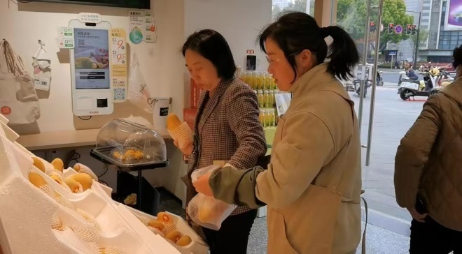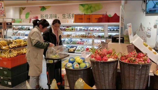 郭敏對“新橙源味”門店中的所有商品了如指掌,從產(chǎn)品特點、陳列要求、儲存環(huán)境、檔期促銷等,她都如數(shù)家珍。同時,新橙源味定位是為社區(qū)居民提供一日三餐新鮮食材和日常用品,她對生鮮類的產(chǎn)品知識儲備尤為豐富,熱情主動給顧客提供烹飪方式、營養(yǎng)搭配、挑選技巧等有效建議,幫助顧客買到心儀的商品。很多顧客到店,都奔著這個“很懂生活”的橙妹。