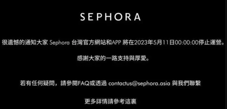 繼退出俄羅斯市場后,近日,絲芙蘭再度宣布,將于5月11日起停止對中國臺灣地區(qū)官方網(wǎng)站及APP的運營,如果向前回溯,絲芙蘭在全球的日子也并不好過。