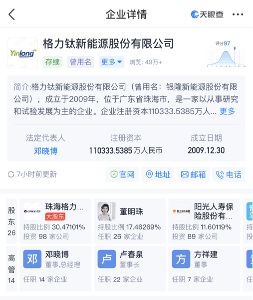 董明珠不甘心,繞過股東,動用了商場上經(jīng)營多年的資源和人脈,出資30億元,共獲得珠海銀隆22.388%的股權。此后,董明珠繼續(xù)參與到珠海銀隆的融資,董明珠個人持股增加到17.46%,成為公司第二大股東。